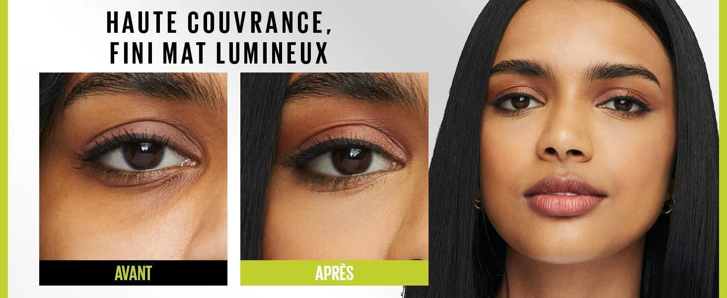 Effet : Couvrance complète avec un fini mat naturel, sans effet masque.