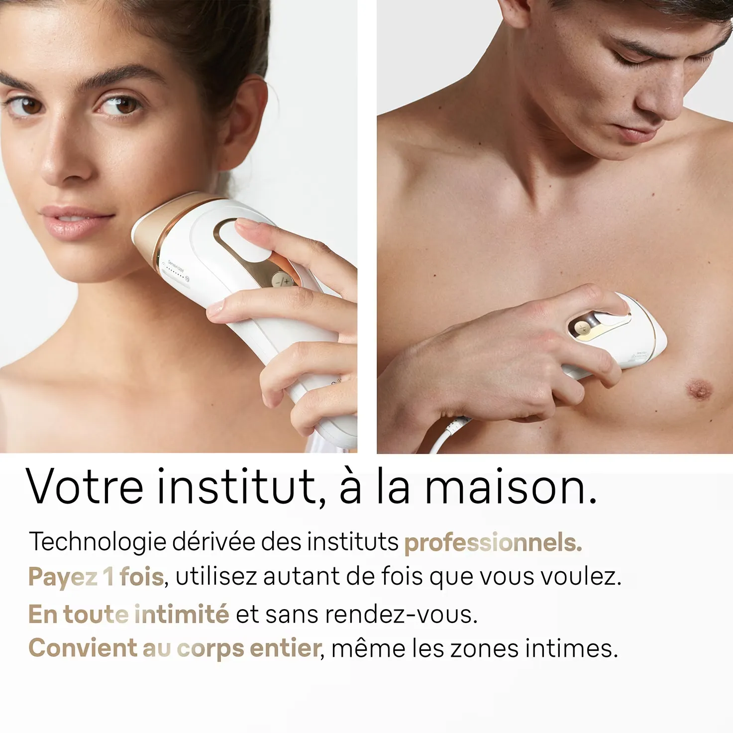 La technologie IPL de Braun est conçue pour être efficace sur une large gamme de teints de peau, du clair au moyen foncé, et sur des poils allant du blond naturel au brun foncé ou noir.
