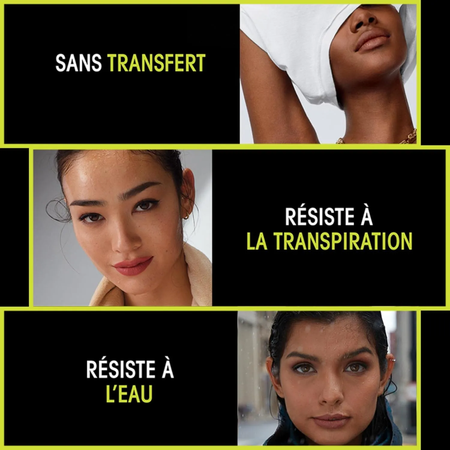 - Résiste à la transpiration, à l’humidité et au transfert.